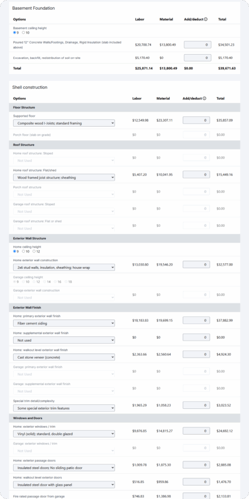 Extensive range of options per building system ensures an estimate reflecting your scope of work and desired quality levels.