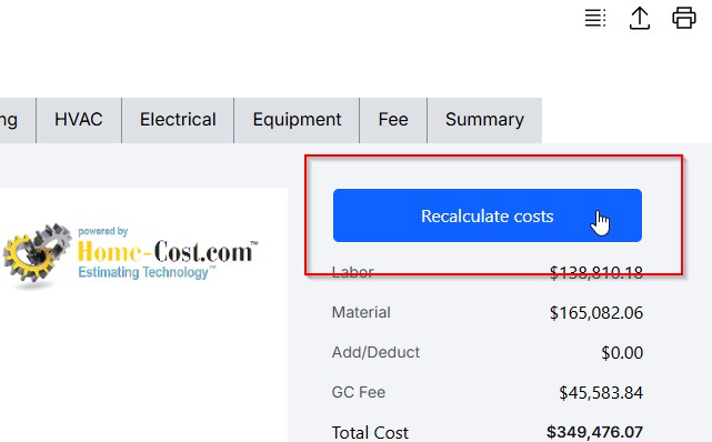 - EDITABLE COSTS: Edit the line-item labor & material price with the “Add/Deduct” field if you want to change a cost.