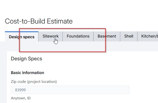 Instant™ is designed for fast and easy navigation in desktop or mobile applications. Simply enter basic design data such as square feet and other key data into the dialog boxes, or by selecting the appropriate radio buttons. Then simply make design and material choices for major building systems. These systems include Site work, Foundations, Basement, Exterior Shell, Kitchen / Bath, Interiors, Plumbing, HVAC, Electrical, Equipment / Appliances and General Contracting Fee.